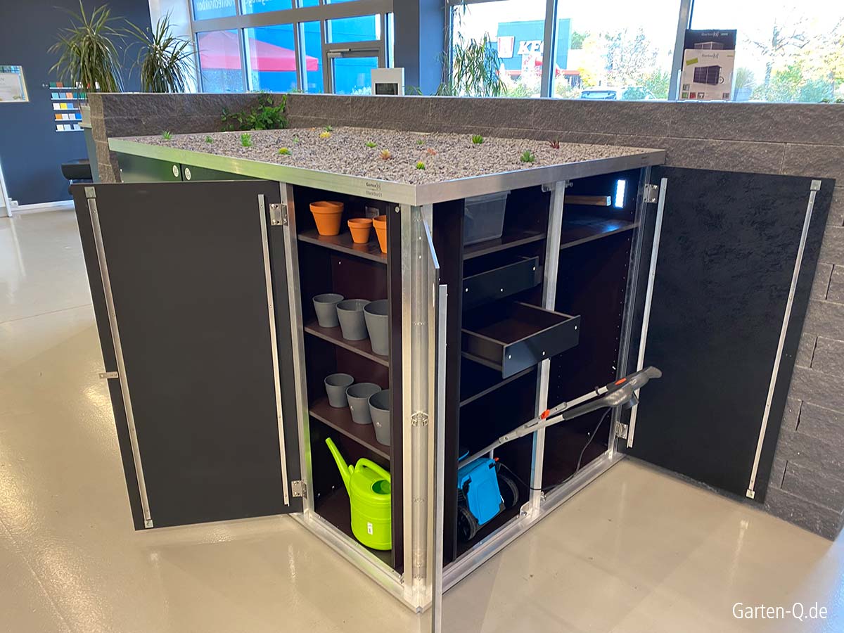 Ausstattung: BackShed-3 als Unterstand, 1x Schublade